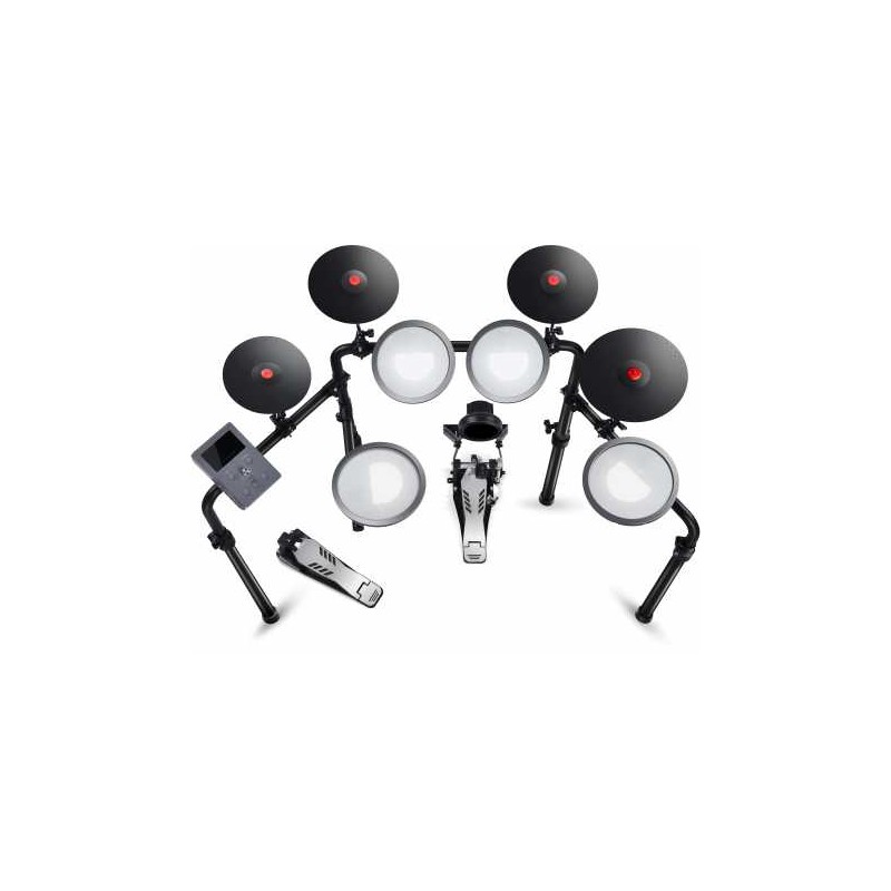 Ce modèle comprend un rack plus haut et plus large et dispose d'un ensemble de neuf pièces : deux toms de 7 pouces, une caisse claire et un tom de 8 pouces, trois cymbales de 8 pouces et une cymbale Ride de 10 pouces. L'ensemble de grosse caisse complet, avec une pédale de taille standard, allié au contrôleur Charley lui aussi de taille standard te permettront d'explorer des techniques avancées dans ton style de jeu.