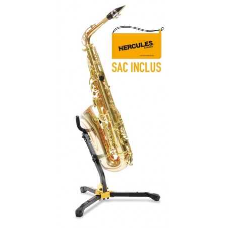Support pliable pour saxophone alto ou ténor, étrier de maintien supérieur repliable, étrier d'appui inférieur ajustable, mousses SFF et pieds pivotants, livré avec housse (poids: 1.1 kg, taille replié: 31 x 14 cm).